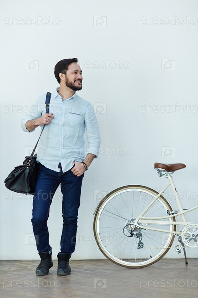 Улыбающийся азиатский мужчина с велосипедом
