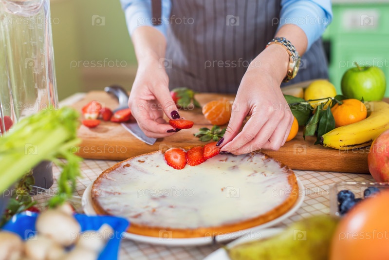 Домохозяйка готовит фруктовый пирог