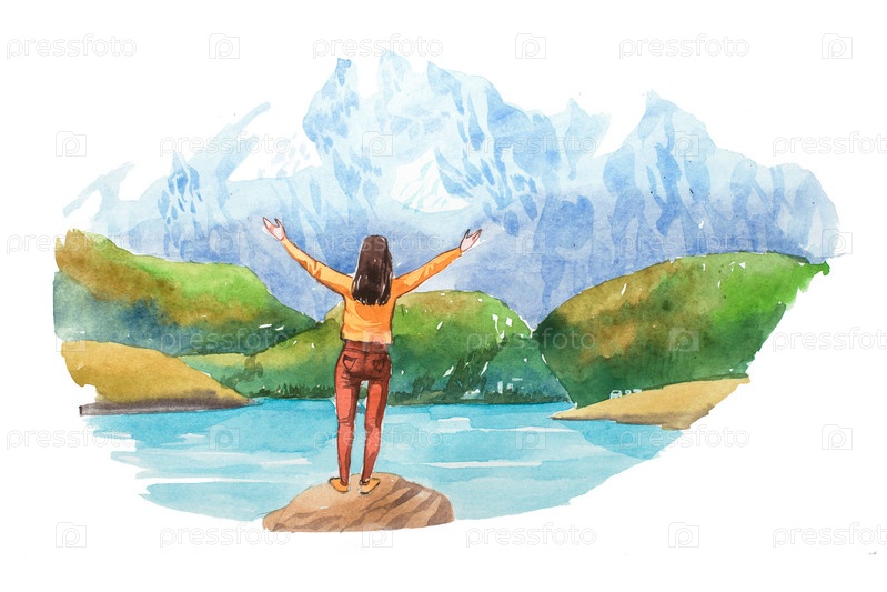 Женщина в Альпах с озером