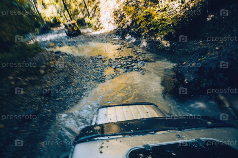 Экстремальное пересечение горного ручья на автомобилях