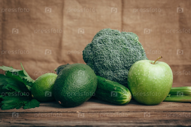 Зеленые овощи и фрукты