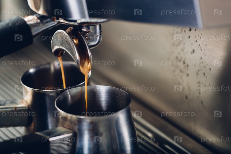 Наливание эспрессо из кофеварки