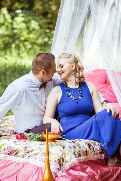 Пара в постели на лугу