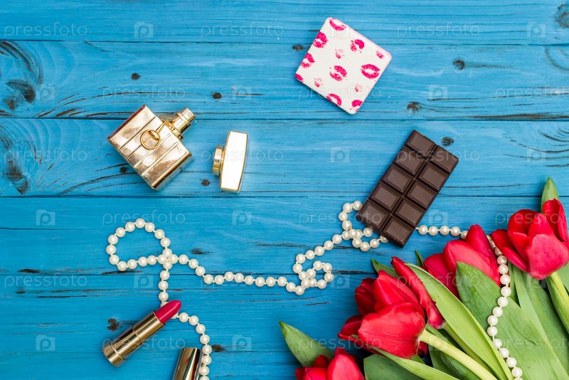 Красные тюльпаны и женские аксессуары