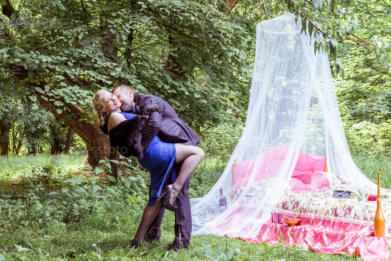Пара в постели на лугу