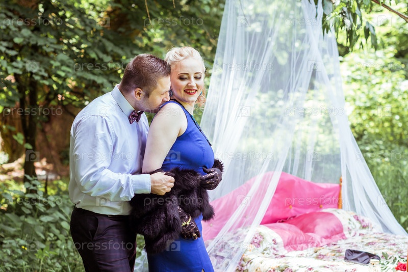 Пара в постели на лугу