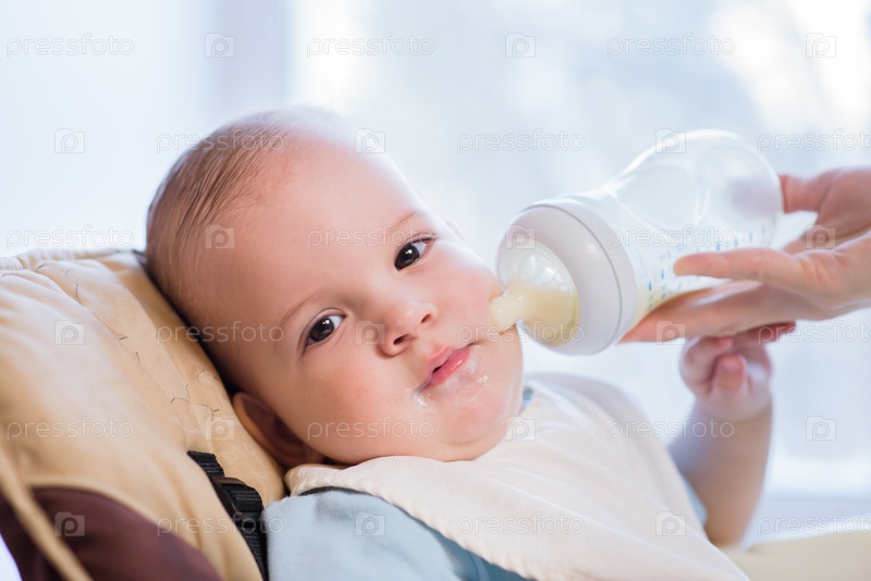 Мать кормит ребенка из бутылочки