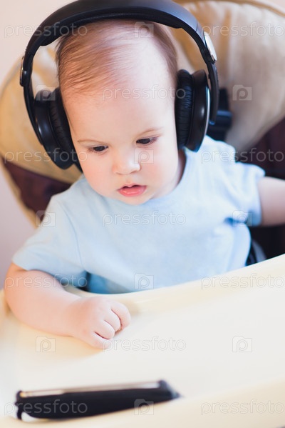 Маленький ребенок смотрит мультфильм по телефону