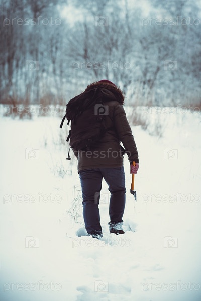 Мужчина в лесу с топором