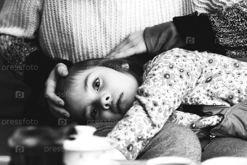 Ребенок лежит на коленях матери