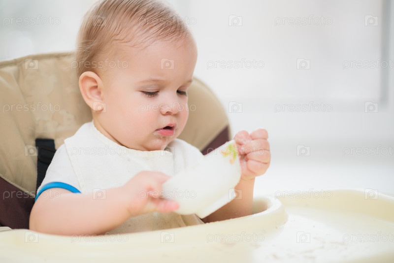 Малыш ест кашу руками