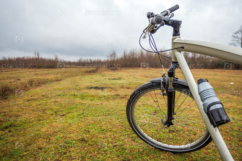 Грязный велосипед на поле