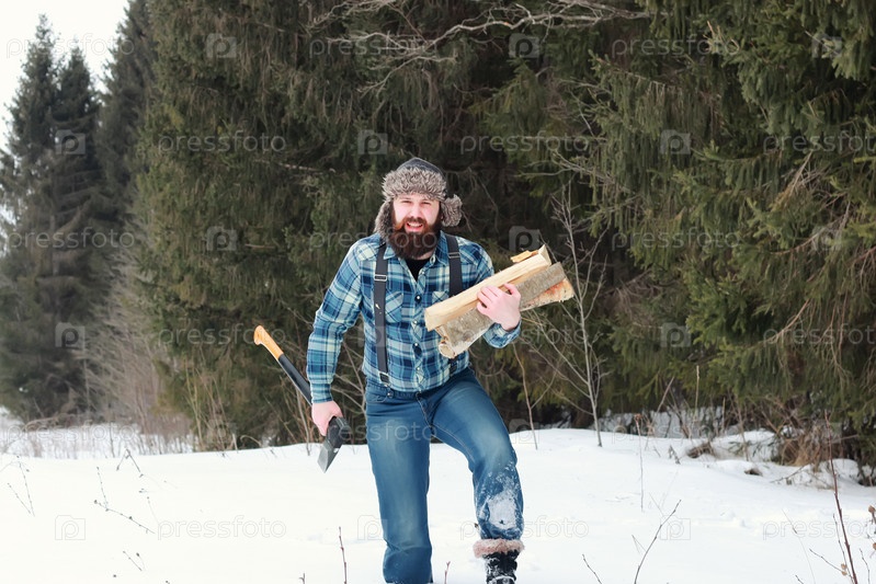 Мужчина зимой с топором