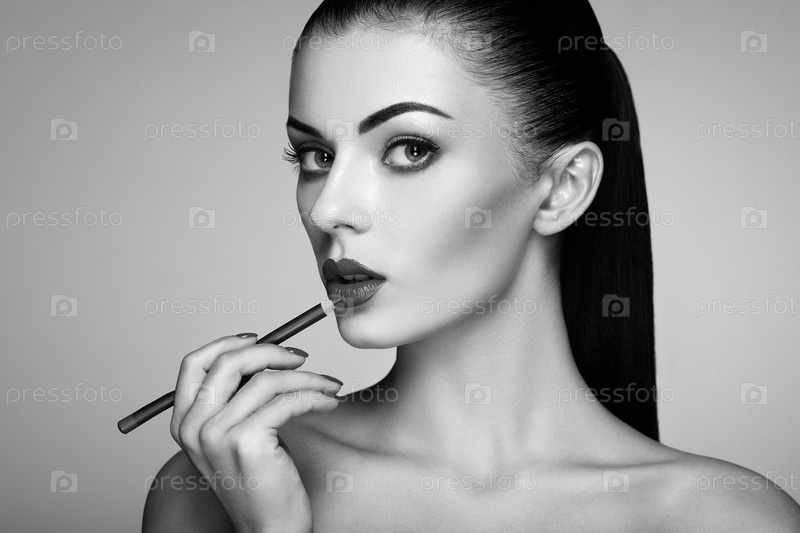 Красивая женщина красит губы