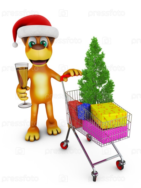 Собака с тележкой с подарками