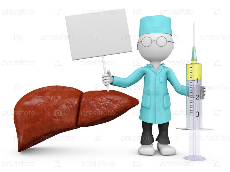 Врач с вывеской и печень