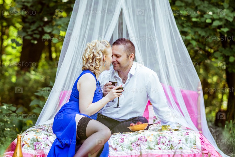 Пара в постели на лугу