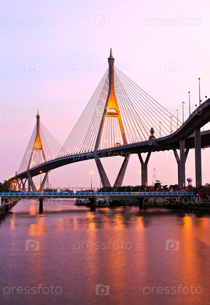 Мост Бхумибол в сумерках, Бангкок, Таиланд