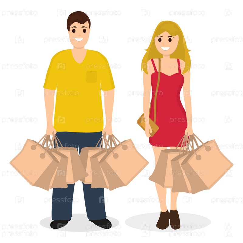 Женщина и мужчина с покупками