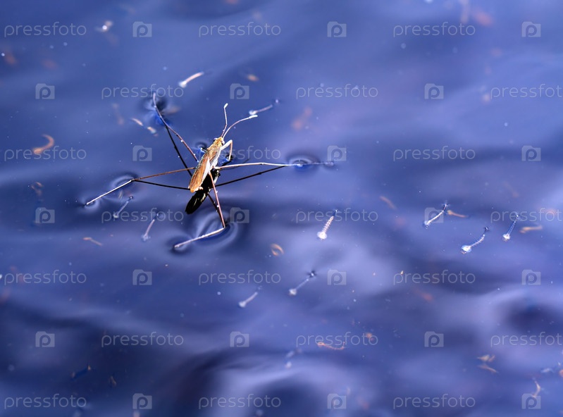Водомерка на голубой воде