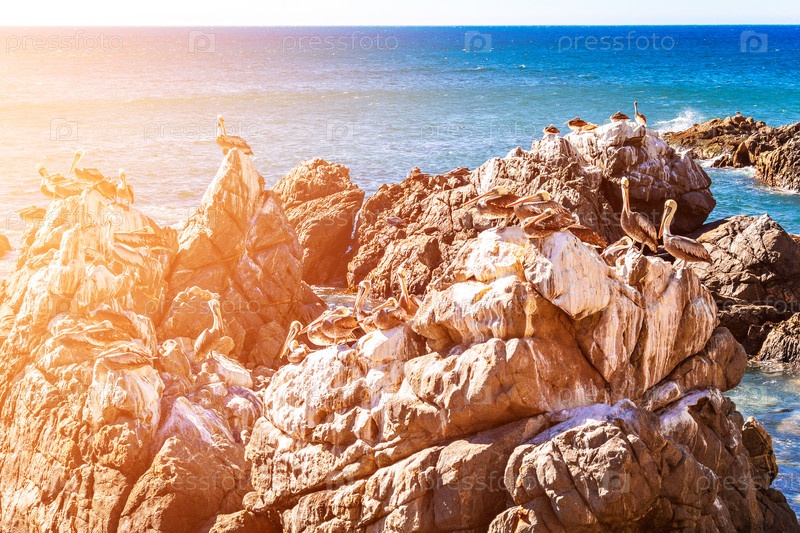 Скалы с коричневыми пеликанами в Чили