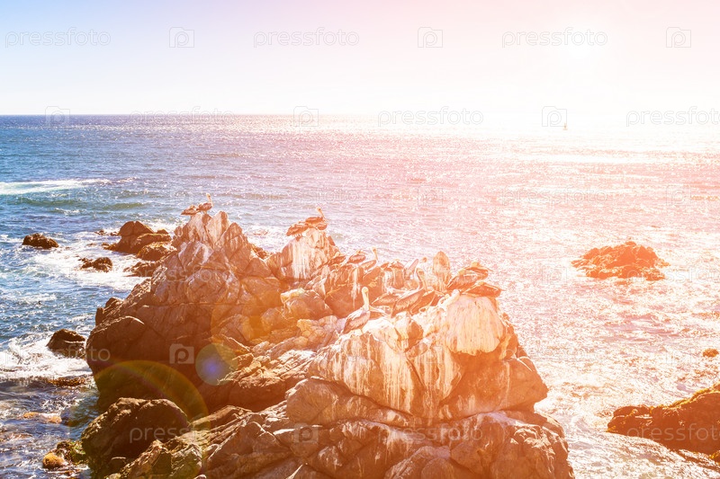 Скалы с коричневыми пеликанами в Чили
