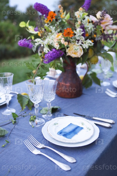 Сервировке стола с цветами
