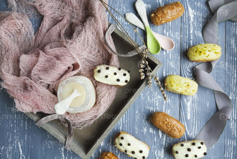 Эклеры с шоколадом и взбитыми сливками