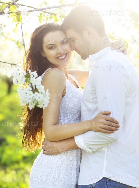 Влюбленная пара в парке весной
