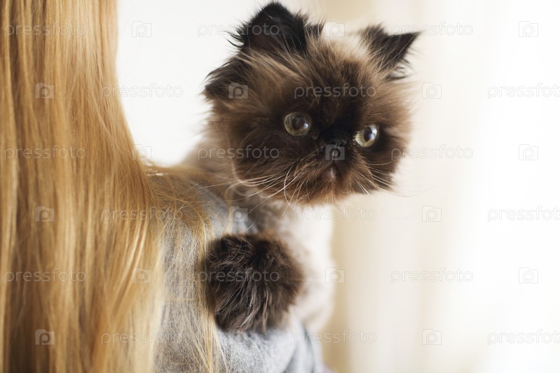 Блондинка с персидской кошкой