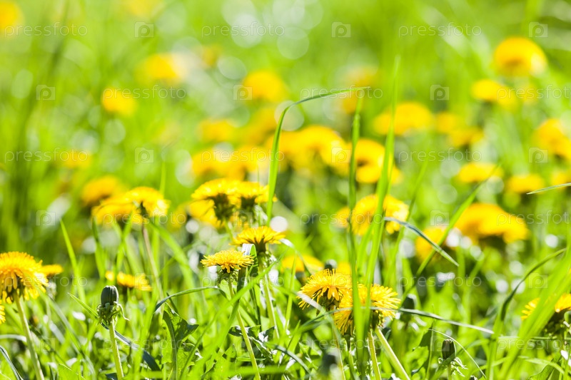 Желтые одуванчик в поле
