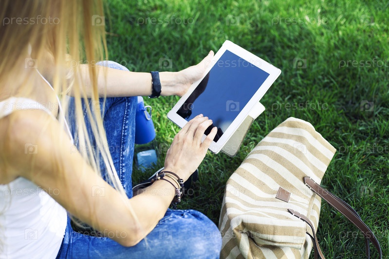 Девушки на фоне природы с планшетом