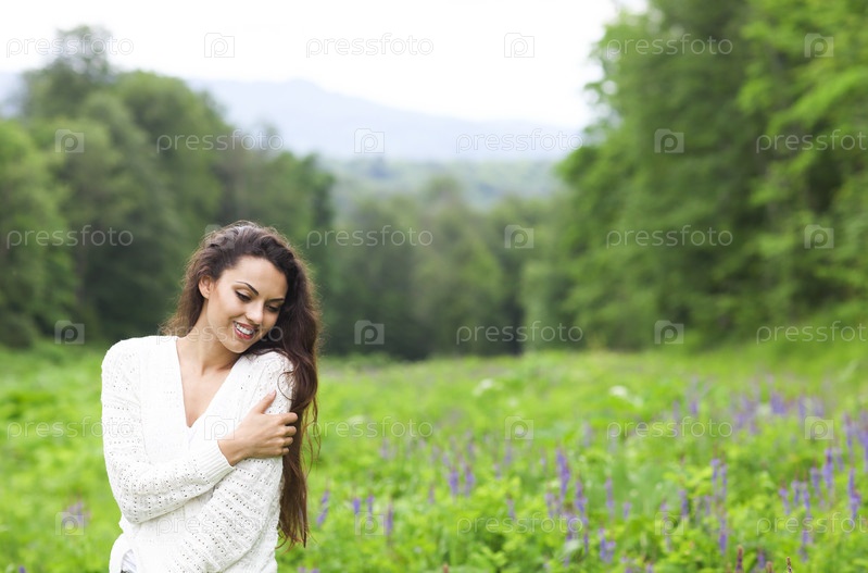 Счастливая женщина в поле
