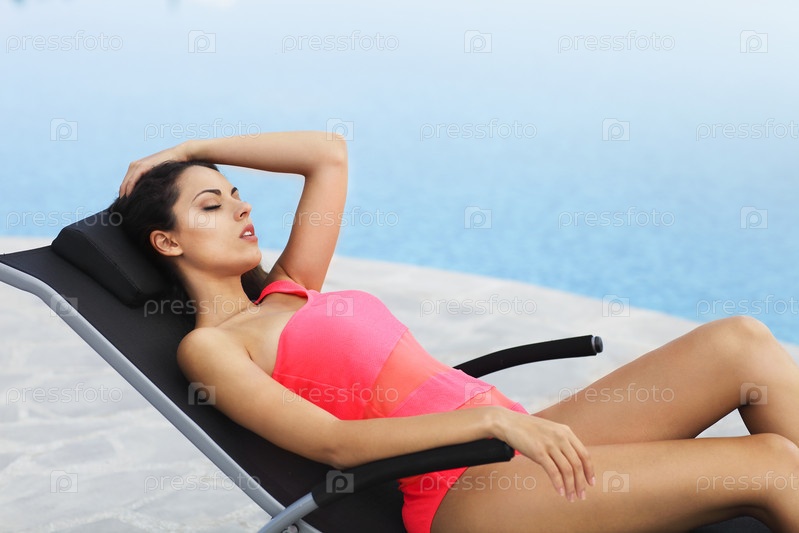 Красивая женщина у бассейна