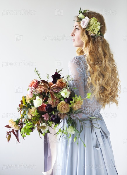 Портрет невесты с венком и букетом