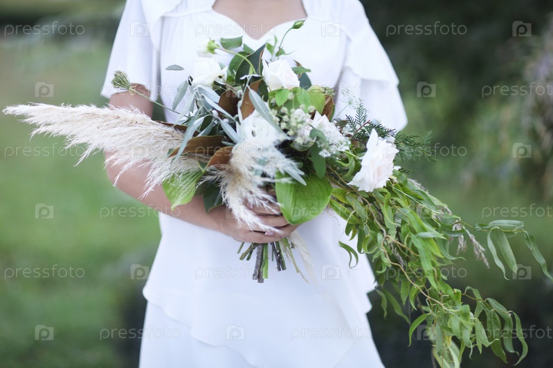 Молодая невеста в белом свадебном платье