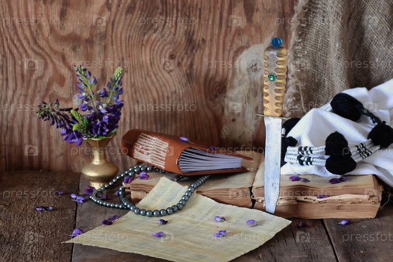 Арабский нож, книга и цветок