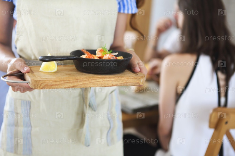 Официантка со сковородкой