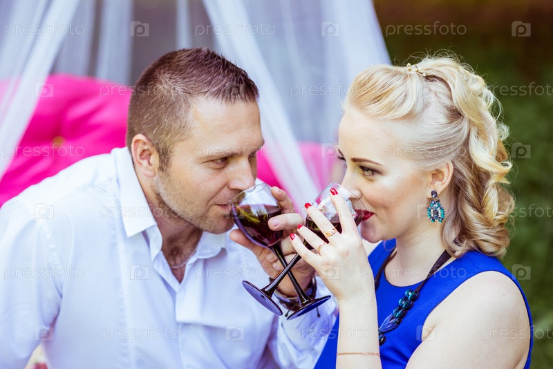 Влюбленная пара с вином