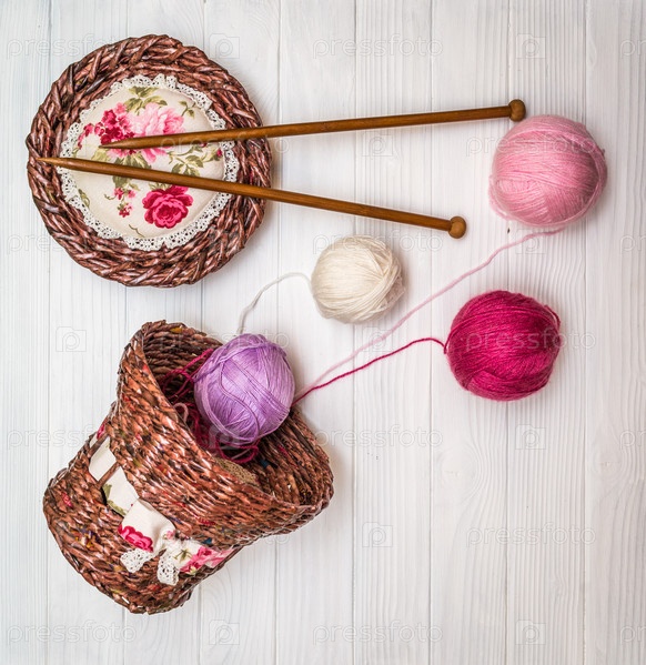 Клубки пряжи на деревянной доске