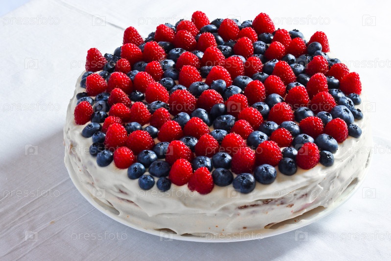 Сливочный сладкий пирог с черникой и малиной