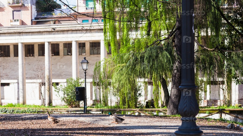 Утка и селезень в городском парке