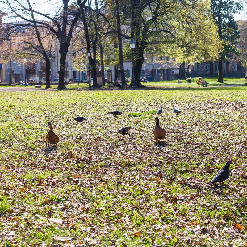 Газон в городском общественном парке Джардини Сальви весной