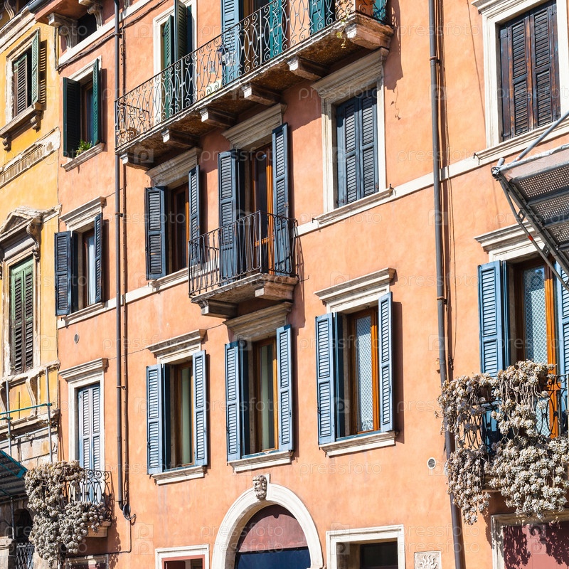 Фасад старых жилых домов в Вероне