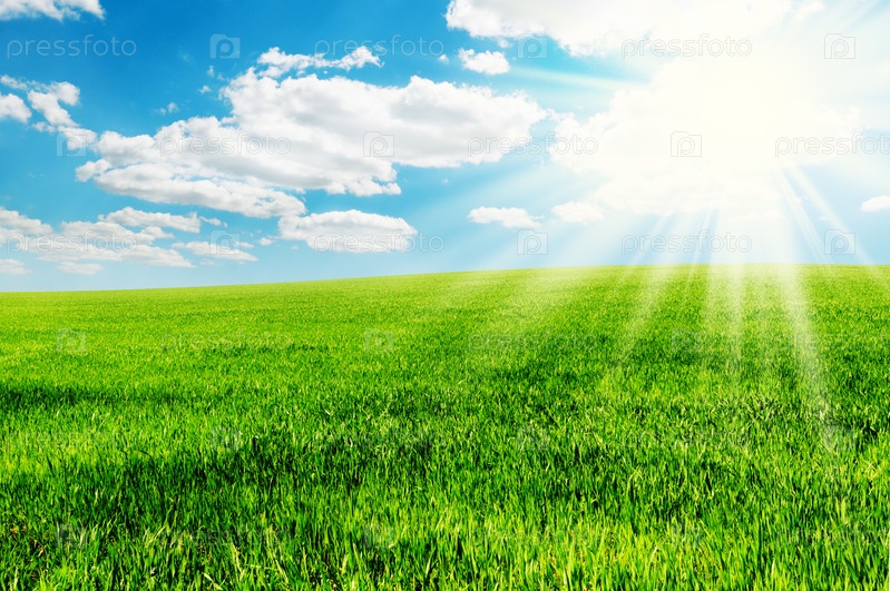 Зеленое поле в солнечный день