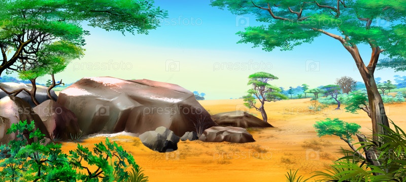 Африканский пейзаж с большими камнями