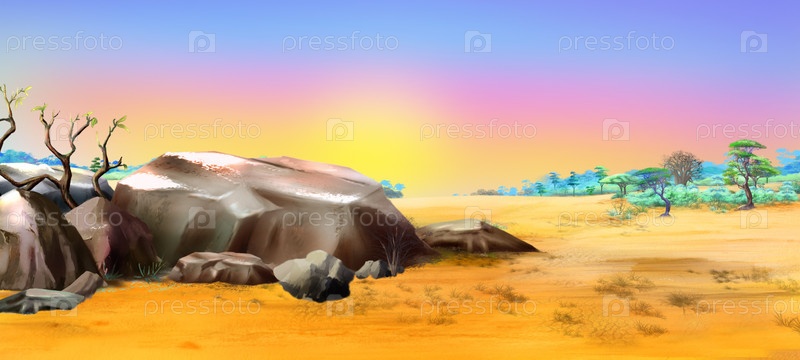 Африканский пейзаж с большими камнями