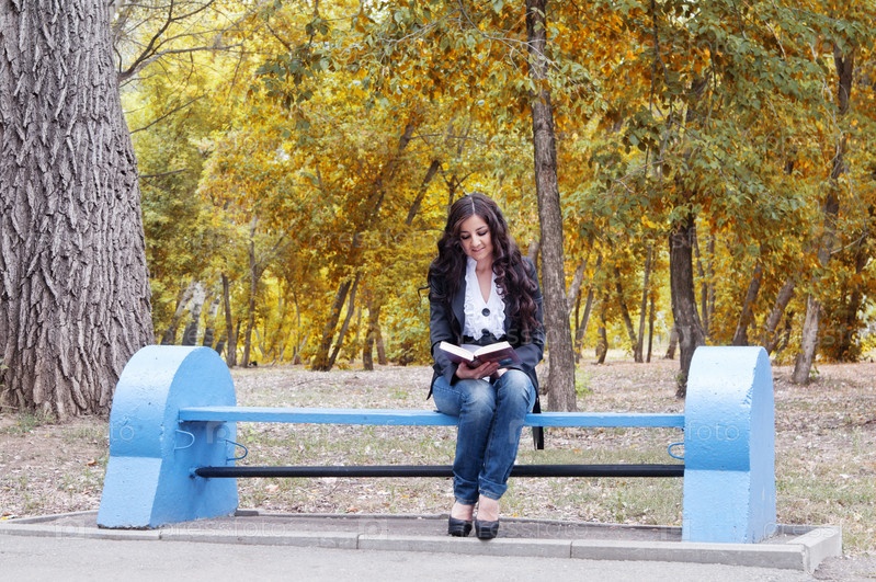 Девушка с книгой на скамейке в осеннем парке
