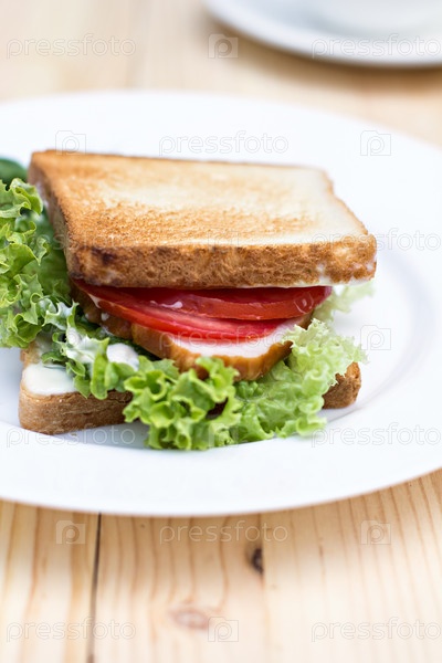Здоровый бутерброд с ветчиной, сыром, помидорами и салатом