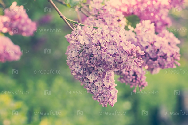 Зеленая ветка с весенними цветками сирени